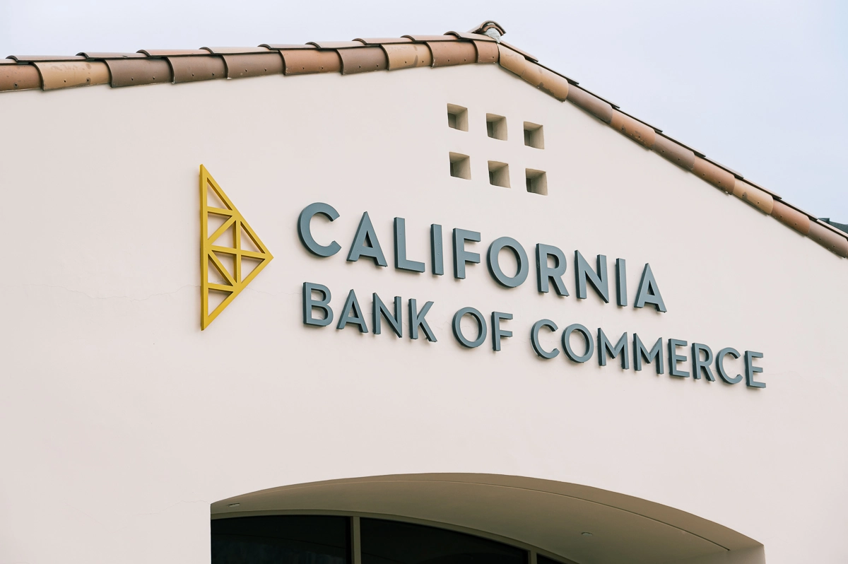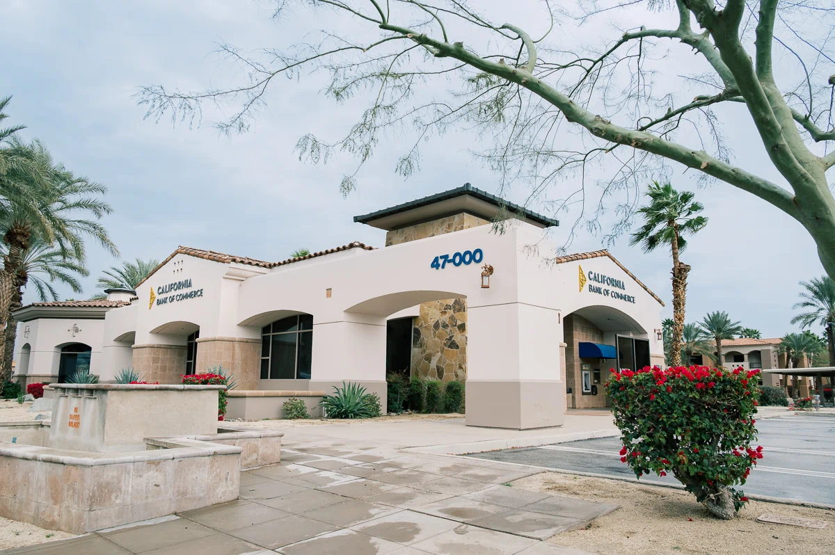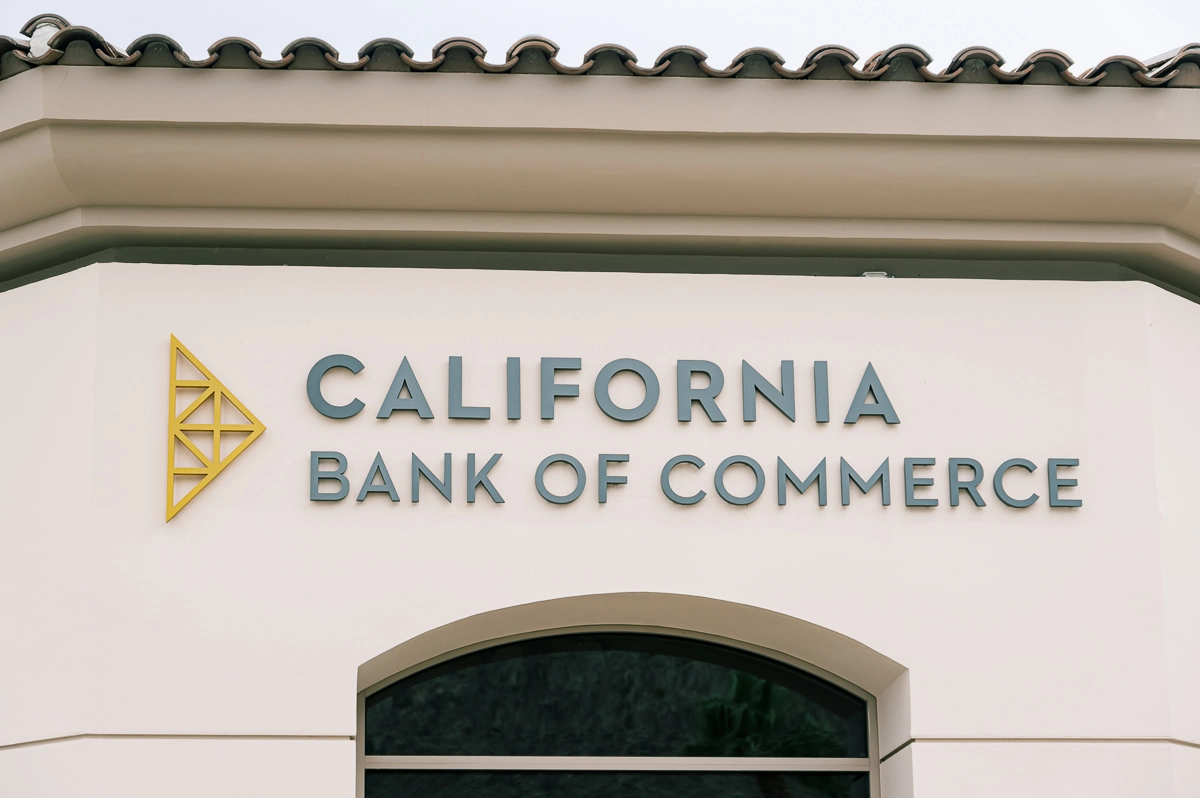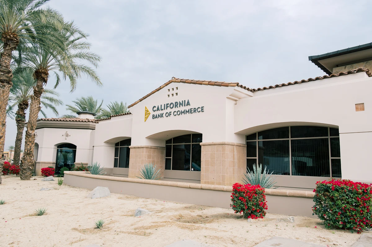 For this California Bank of Commerce branch in La Quinta, the architecture does a lot of the talking. With its heavy stone pillars, warm stucco, and deep arched entryways, the building has a very specific "high-end desert" feel. Our task was to get the bank’s branding onto the building in a way that felt like it was part of the original masonry, not just an add-on.