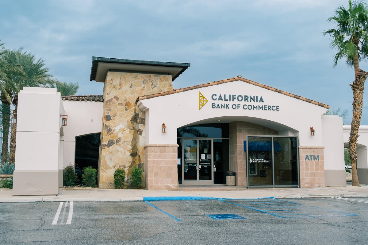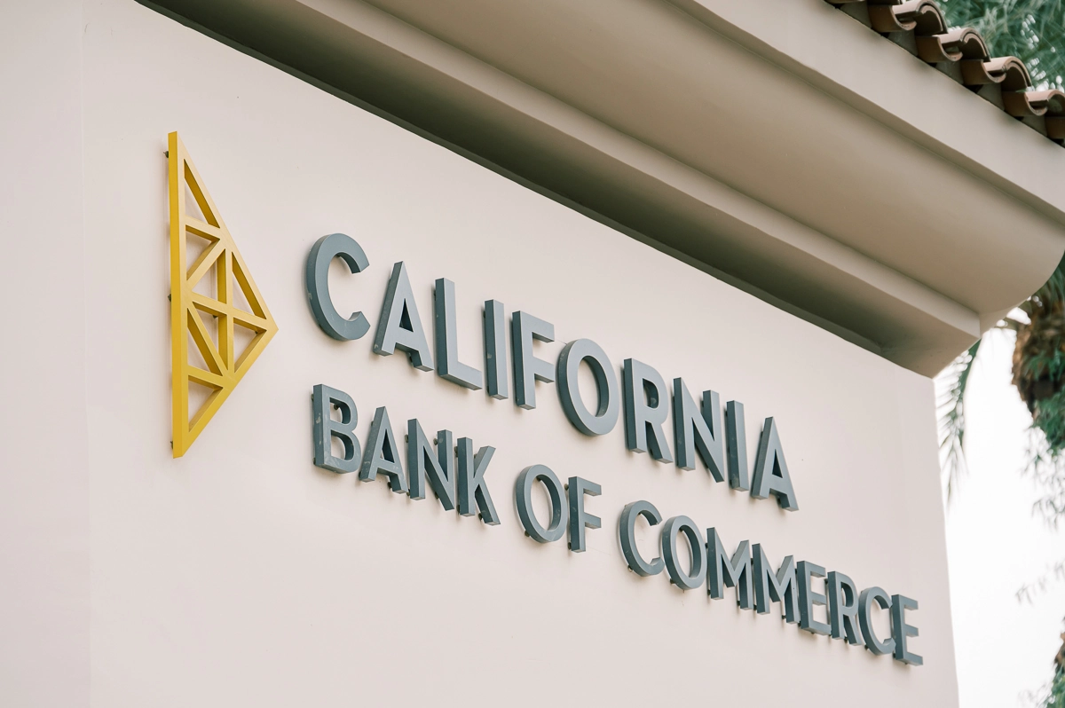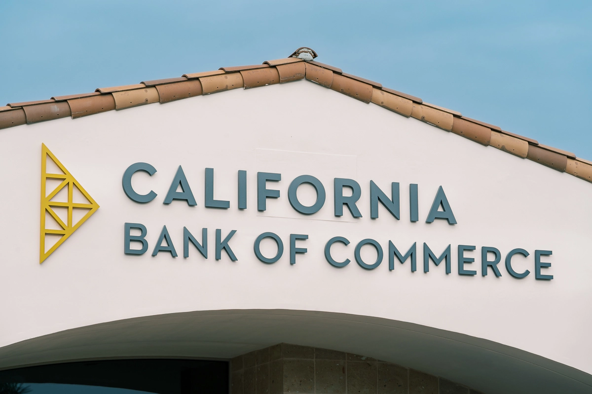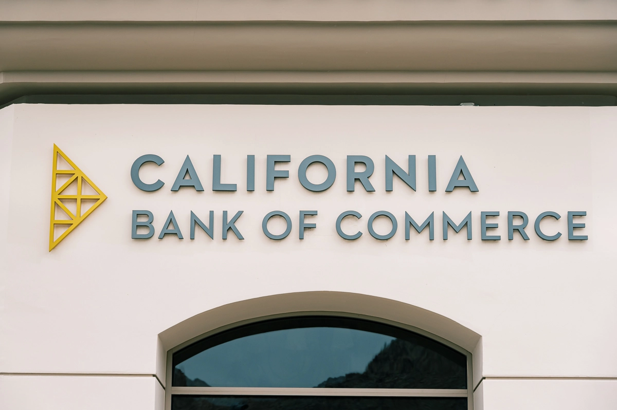 For this California Bank of Commerce branch in La Quinta, the architecture does a lot of the talking. With its heavy stone pillars, warm stucco, and deep arched entryways, the building has a very specific "high-end desert" feel. Our task was to get the bank’s branding onto the building in a way that felt like it was part of the original masonry, not just an add-on.
